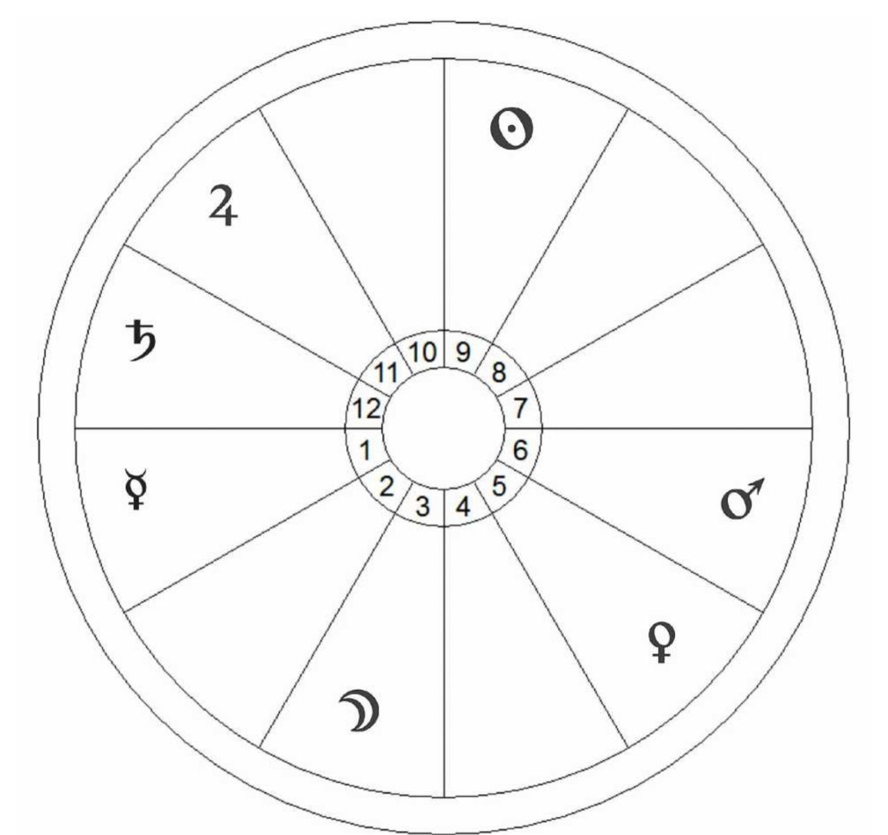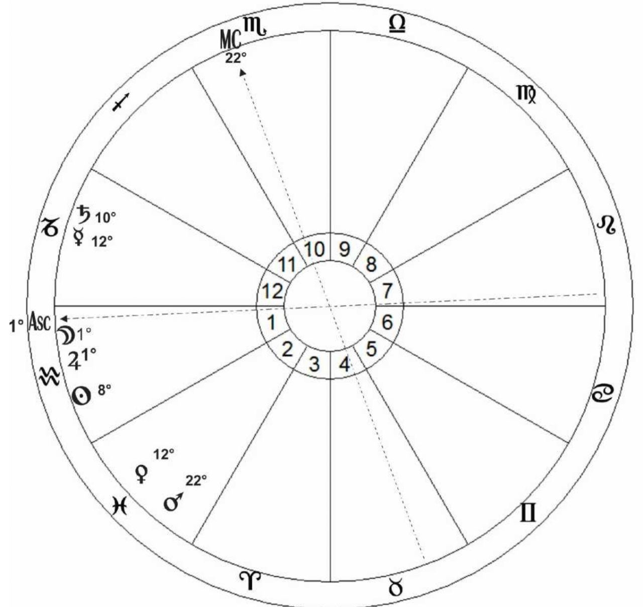 نجد الشمس في الدرجة التاسعة من برج الدلو والزهرة في الدرجة الثالثة عشرة من برج الحوت ومن 8 درجات من برج الدلو إلى 12 درجة من برج الحوت هناك 34 درجة من الطالع الموجود في درجة واحدة من برج الدلو نصل إلى 5 درجة الحوت.