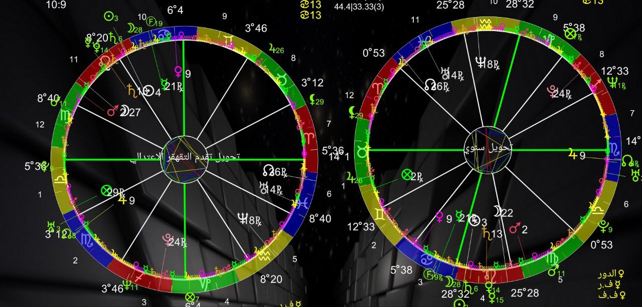 مثلا قد يكون القمر في برج مختلف مع اتصالات مختلفة تماما في الخريطة المتقدمة مقارنة بالخريطة العادية.