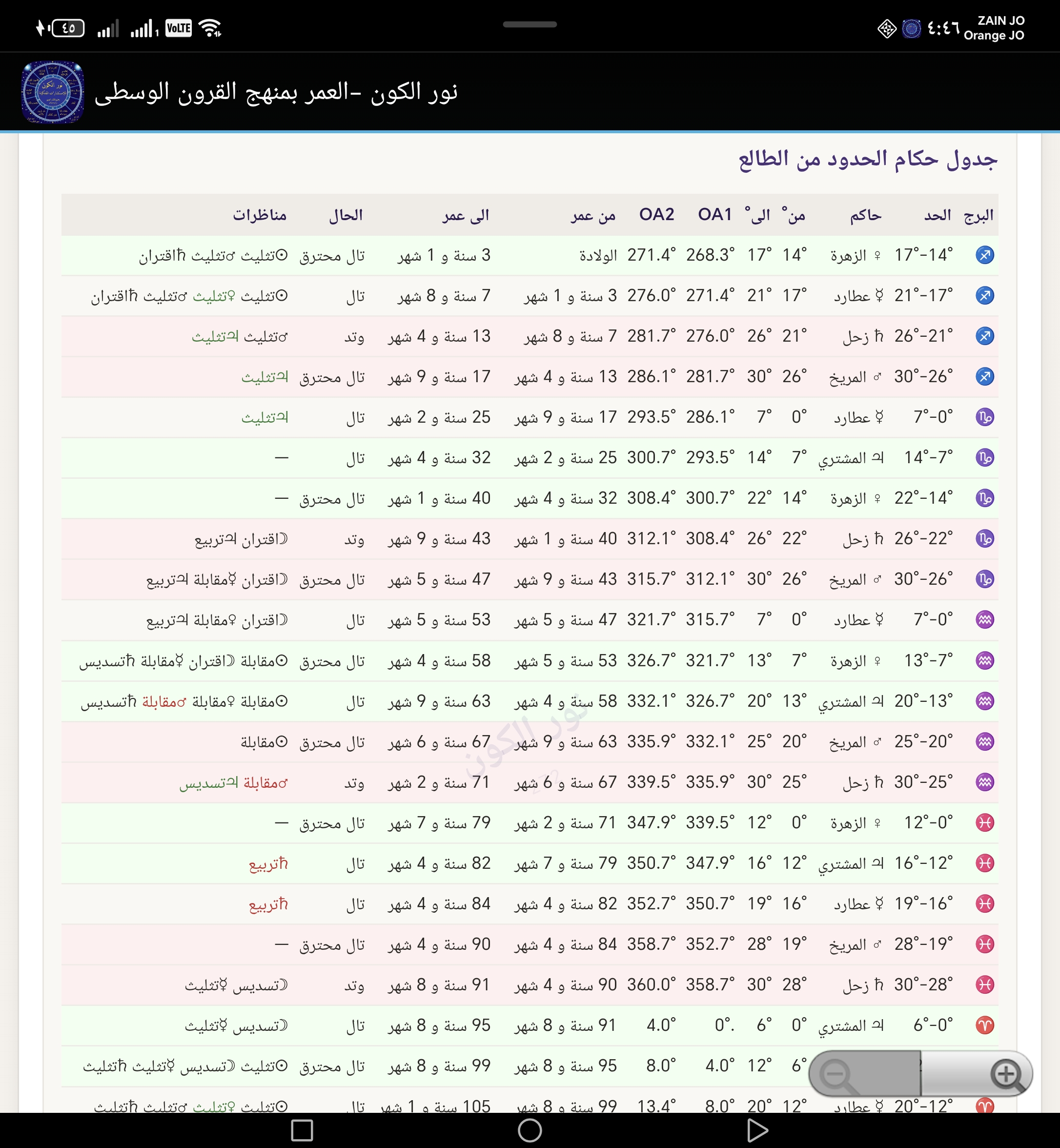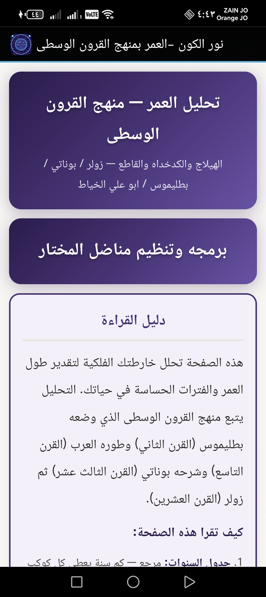 تحليل العمر والحياة حسب نظام التنجيم بالقرون الوسطى وبالاعتماد على عدة مصادر اخر تحديثات برنامج نور الكون