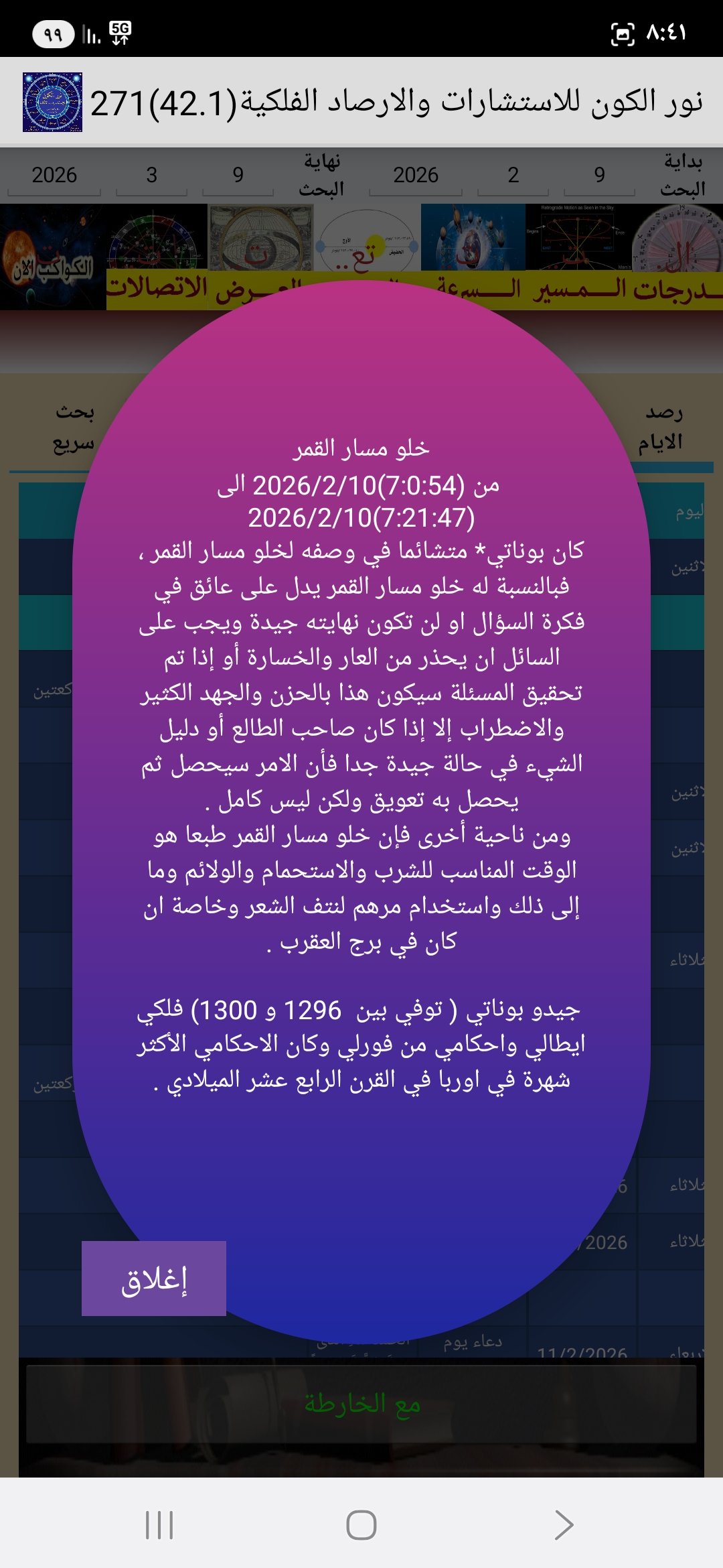 من برنامج نور الكون للاستشارات الفلكية