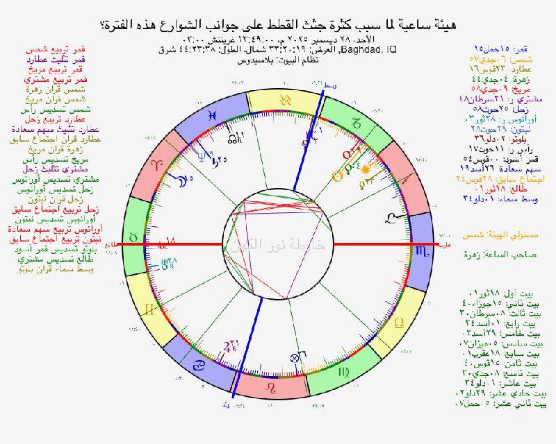 الساعة الفلكية زهرة والزهرة محترقة بالتاسع مع الشمس والمريخ وهذا يضيف طبقة اخرى لان الزهرة لها دلالة على الحيوانات الصغيرة الاليفة في بعض السياقات خاصة حين ننظر للبيت السادس المرتبط بالحيوانات الصغيرة وحاكمه الزهرة.