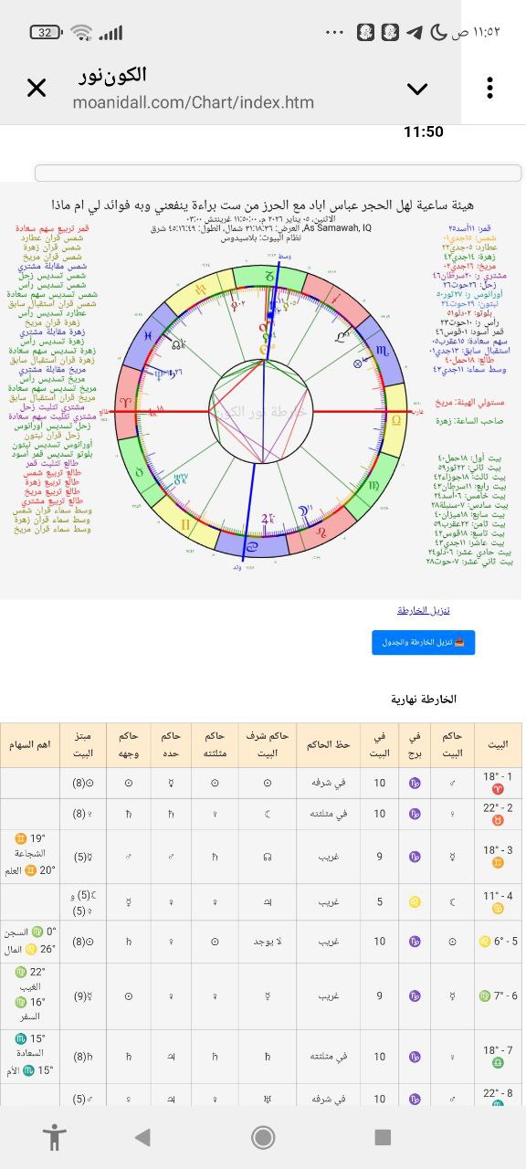 أما القمر فحظوظه الذاتية 1 نقطة والعرضية 9 نقطة، وهو يدل على سير الأمور نحو التمام بإذن الله.