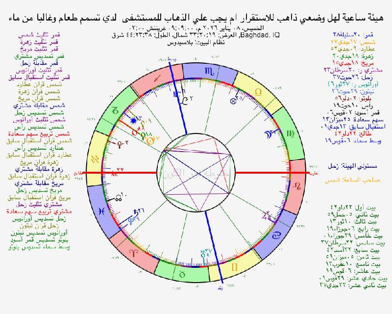 • النتيجة: 90% - المسألة أصلية وجادة.• شروط ما قبل التحليل (الموانع): زحل في الطالع (يدل على هم وقلق للسائل).